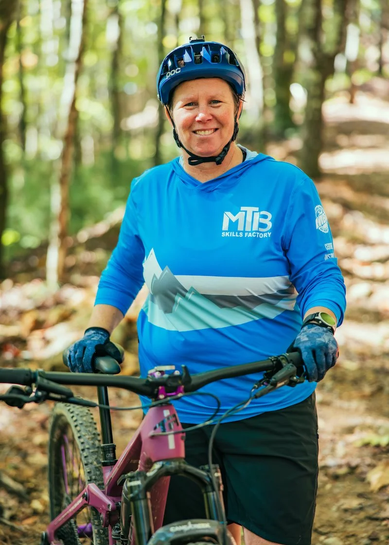 Meet Coach Whitney Houck, an experienced mountain bike coach and retired Coast Guard Veteran with a passion for riding that dates back to 2007. Originally born in Honolulu Hawaii, Whitney has been teaching lessons since 2019. Relocating to Brevard NC in 2021, she quickly became a vital part of the mountain biking community through coaching, community involvement, and a commitment to fostering a love for the sport.